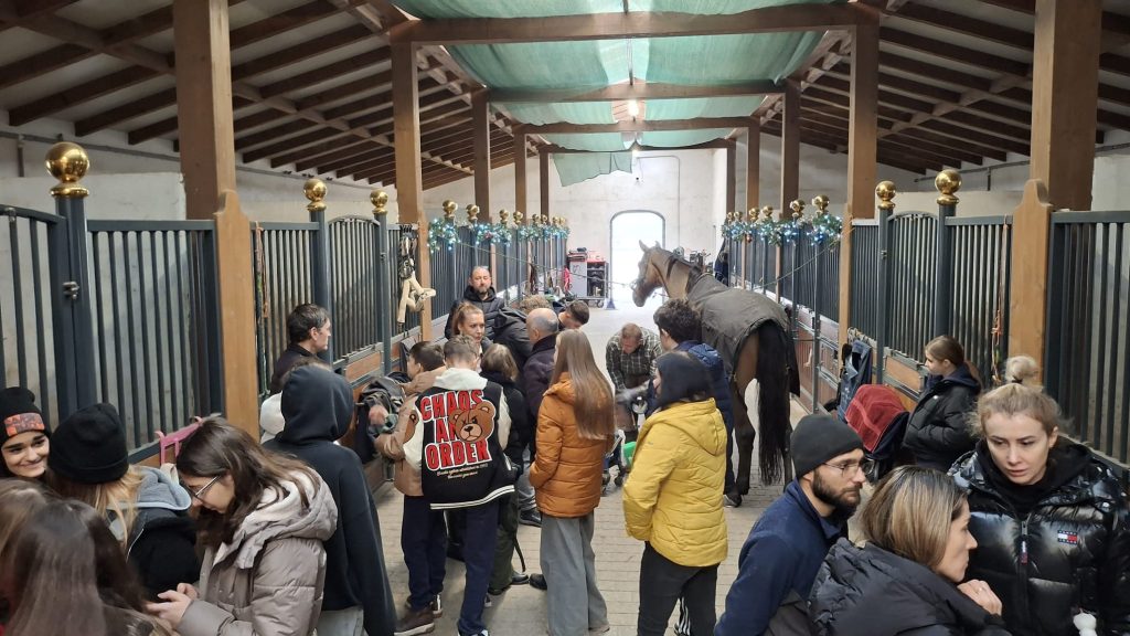 - activități desfășurate în grajd, alături de sportivi și îngrijitori;